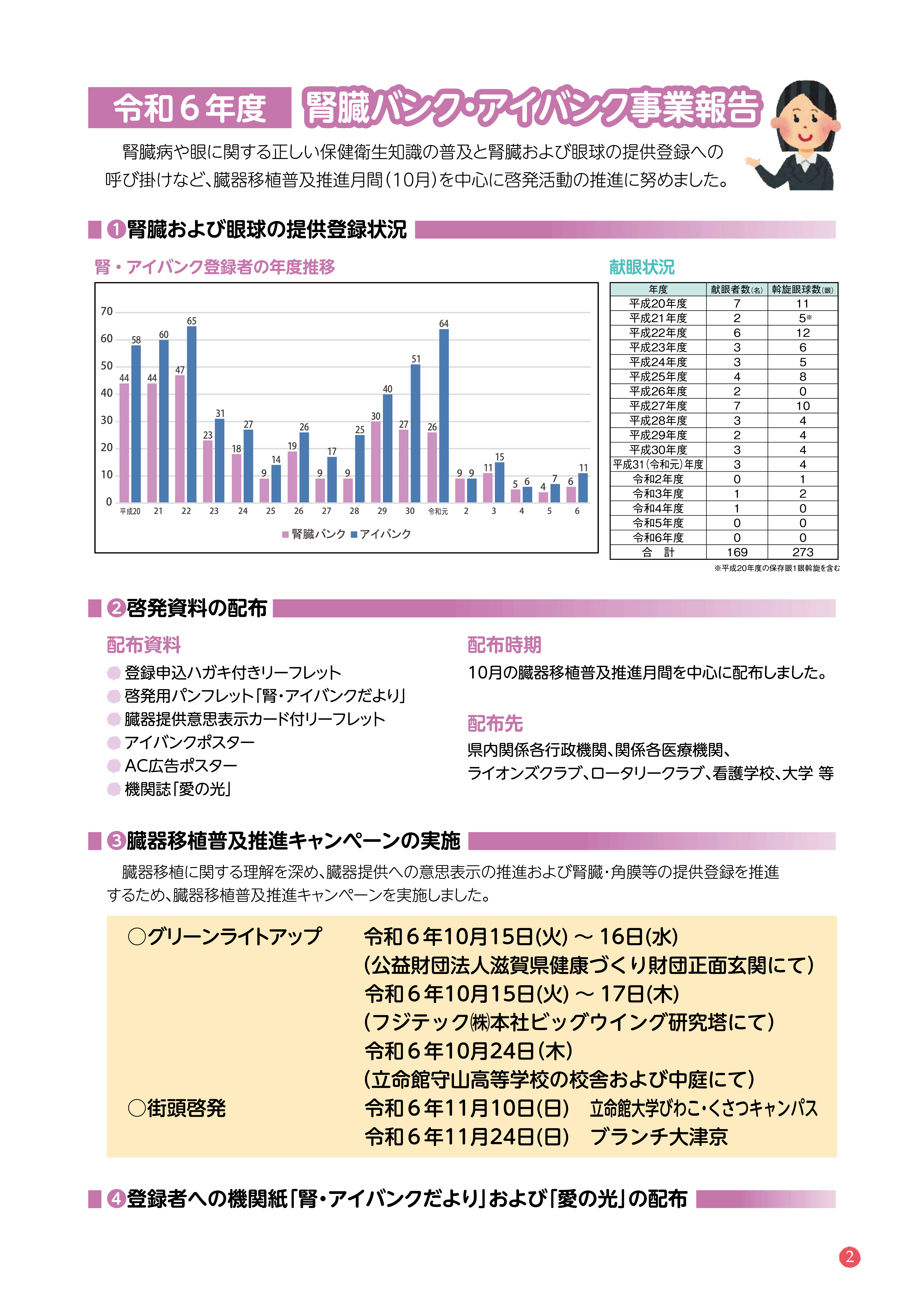 滋賀県健康づくり財団 腎・アイバンクセンターの事業は、皆様からの寄附金、賛助会費等により運営されております。